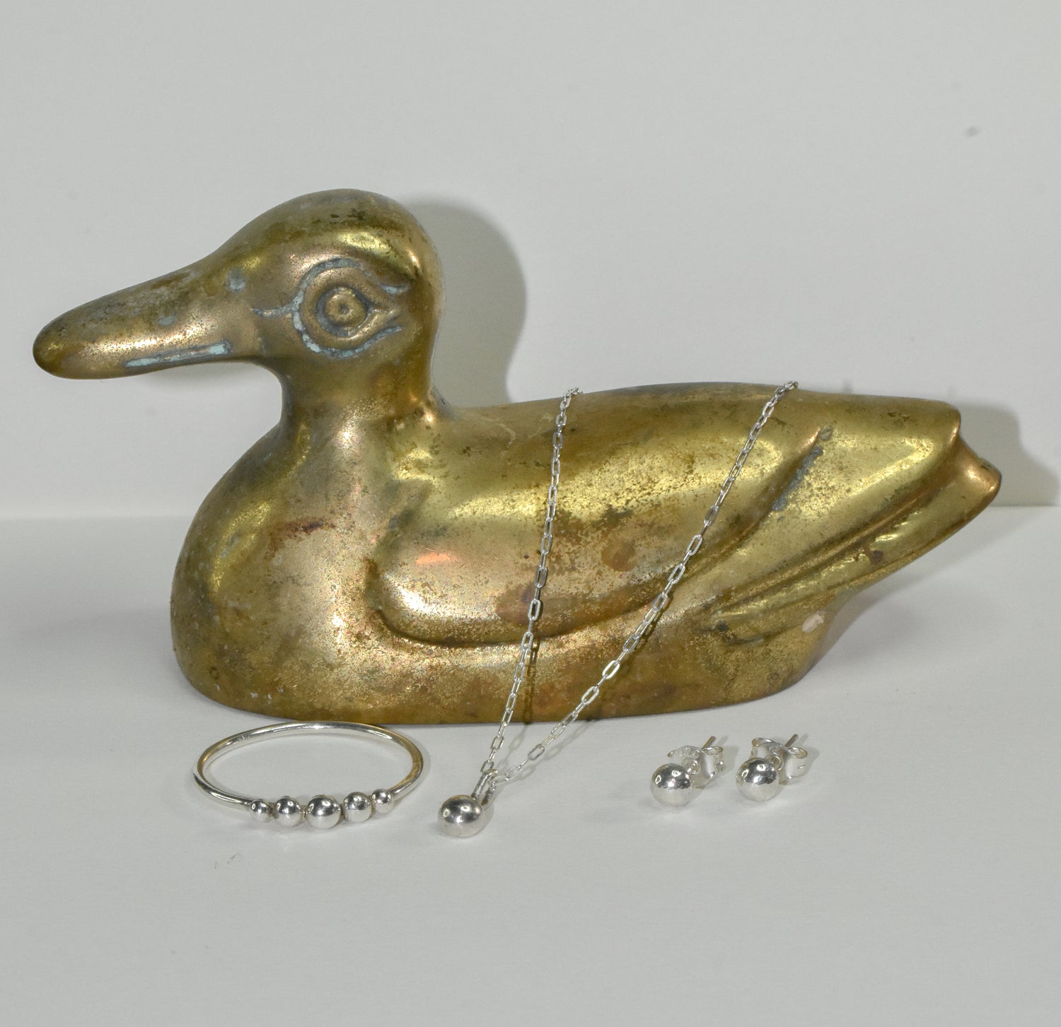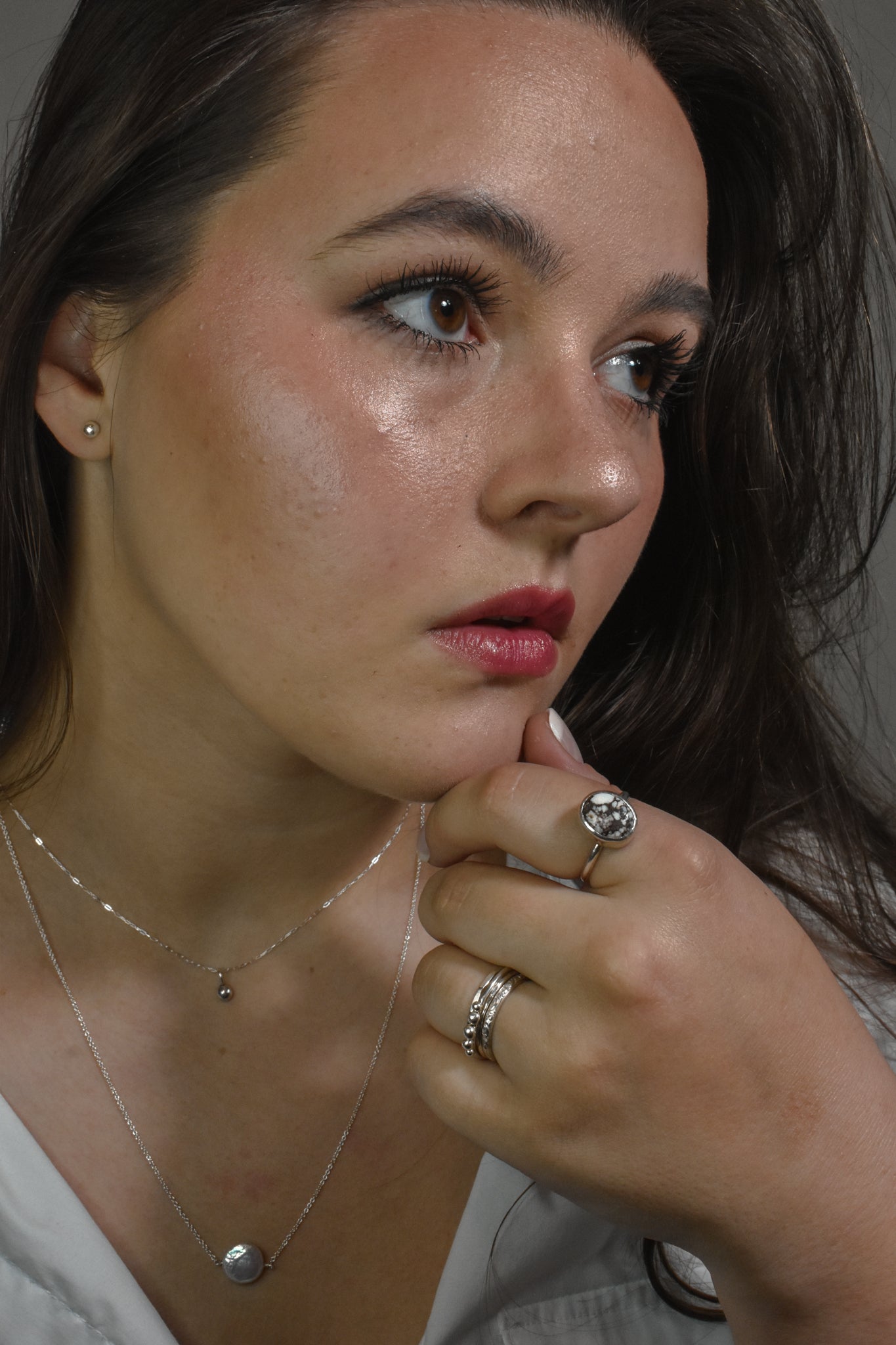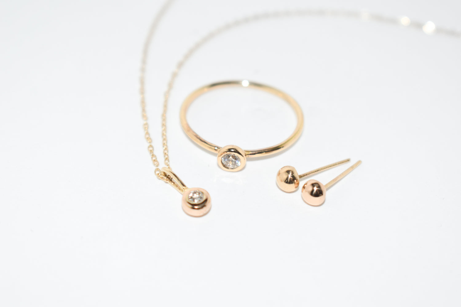 Adorn yourself in Dew Drops, the ball collection. Beautifully elevate your look with the classic design of the sphere. This collection features a dainty ball necklace, the classic ball stud, & a five ball ring. A classic jewelry set that is timeless and elegant, never to go out of style.